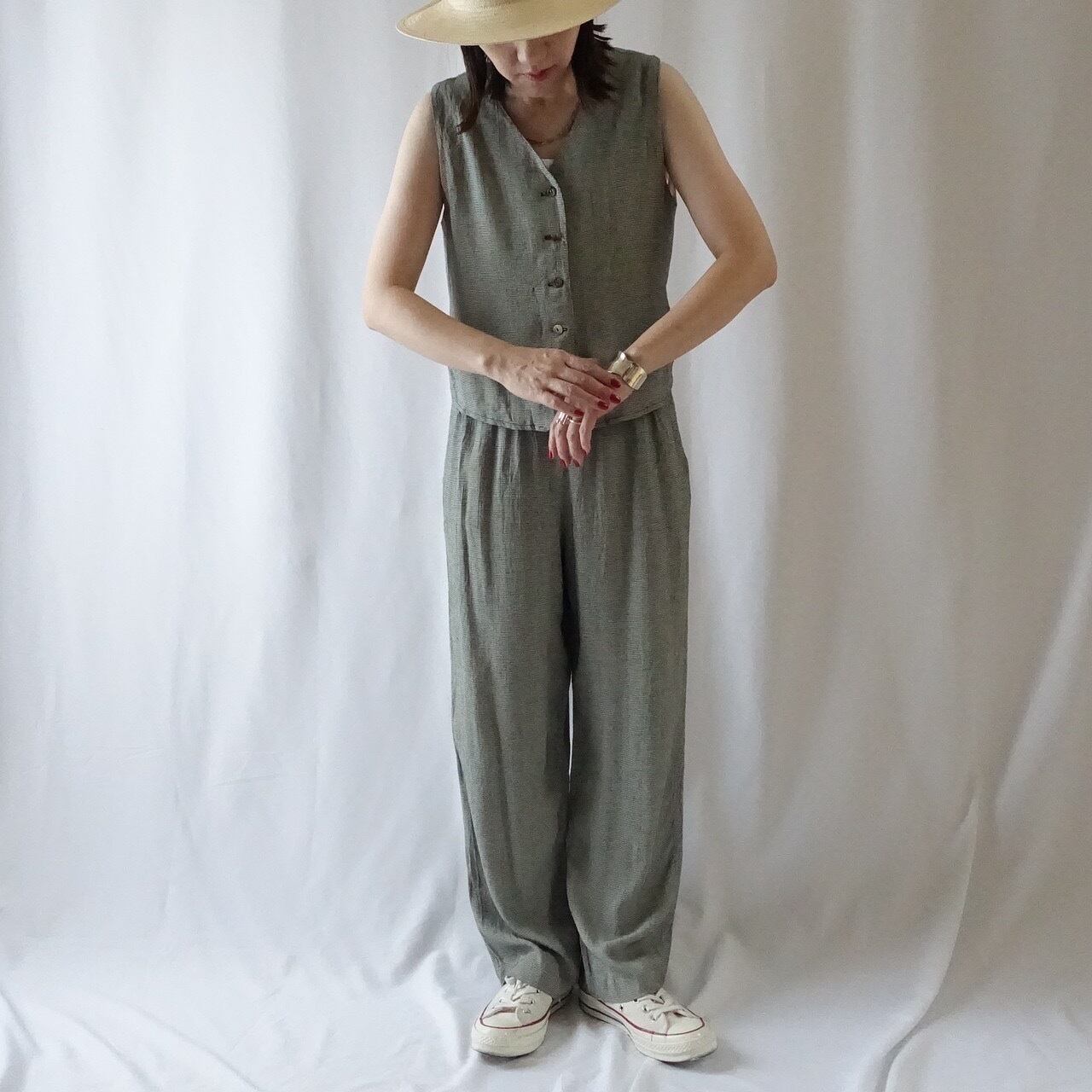 落ち感抜群の、千鳥格子のオールインワン。